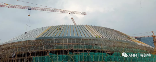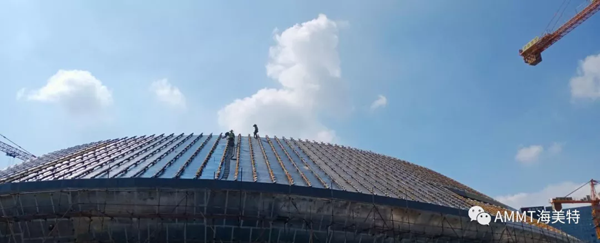 場館整體以“星際漩渦”為設計理念,總建筑面積約8萬方,擁有座位4087個,其中以設計聚脲作為防水的區域面積為1.5萬平米。青島海洋新材料科技有限公司聚脲材料成為電競館屋頂防水唯一指定聚脲材料。