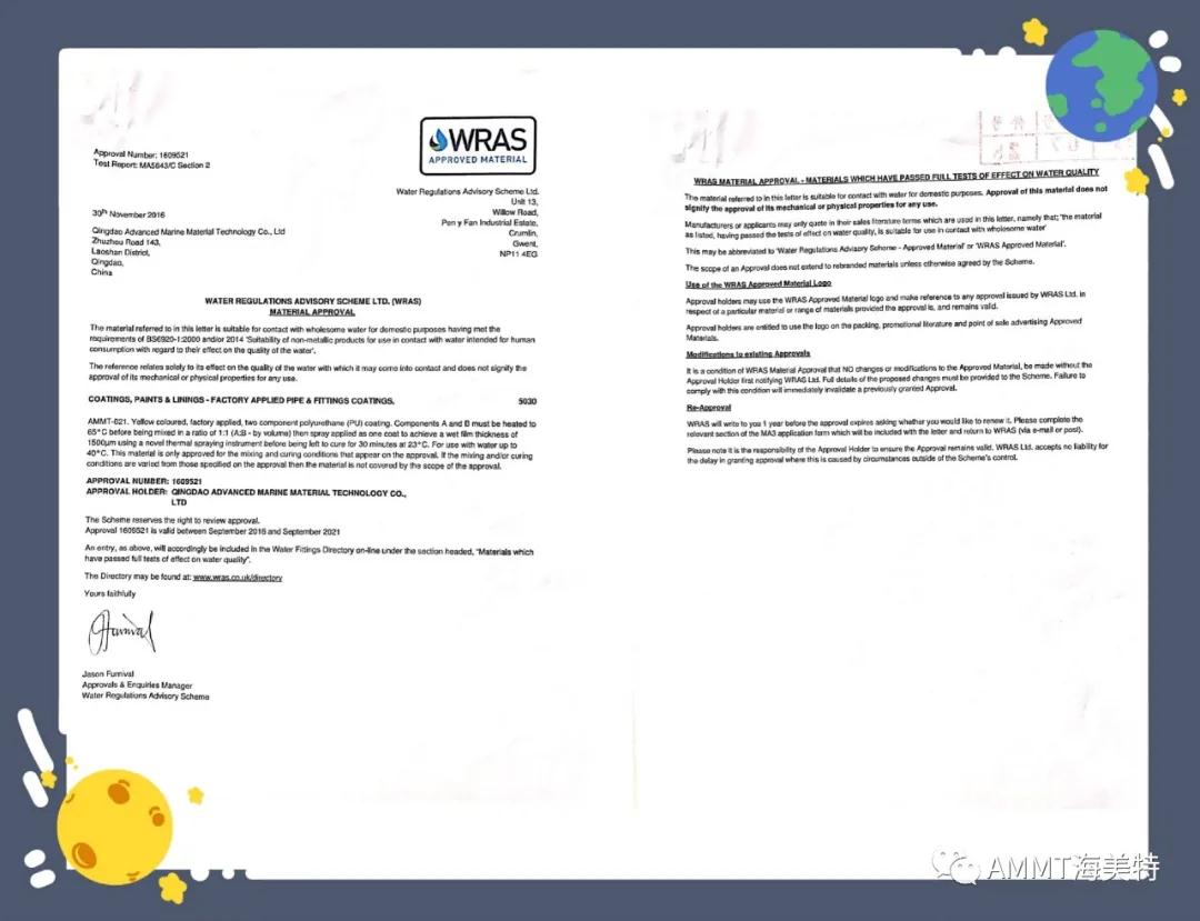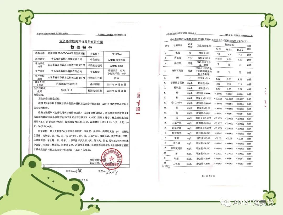 AMMT聚脲系列產(chǎn)品由半預(yù)聚體、聚醚、擴鏈劑等原料組成,綠色環(huán)保,100%固含量,零VOC,經(jīng)過現(xiàn)場噴涂成型的第三代聚脲彈性體。目前主要產(chǎn)品有:AMMT-021管道防腐材料、AMMT-022聚脲防腐材料、AMMT-030高性能聚脲防水材料等。其中管道防腐材料,通過了衛(wèi)生部飲用水檢測和英國皇家水務(wù)飲用水認證,達到涉及飲用水的標準。